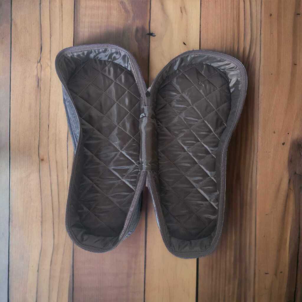 Seus chinelos merecem um lugar especial, e agora você pode guardá-los com muito charme e praticidade. Esse porta chinelos é perfeito para os aventureiros urbanos e fashionistas de plantão. O melhor de tudo? Ele é espaçoso e comporta até 2 pares de chinelos. Em tecido na parte externa.